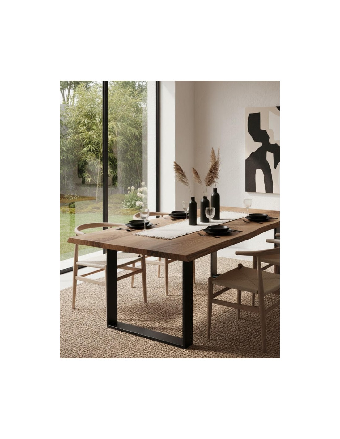 Noyer massif (finition huile naturelle), Acier industriel